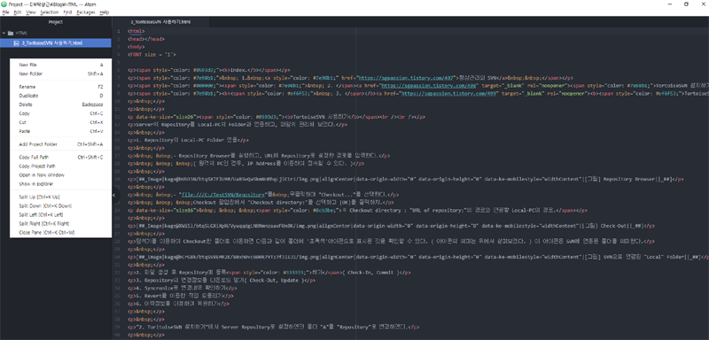 Project Area에 HTML폴더를 기준으로 Tree형식으로 표시가 됩니다.